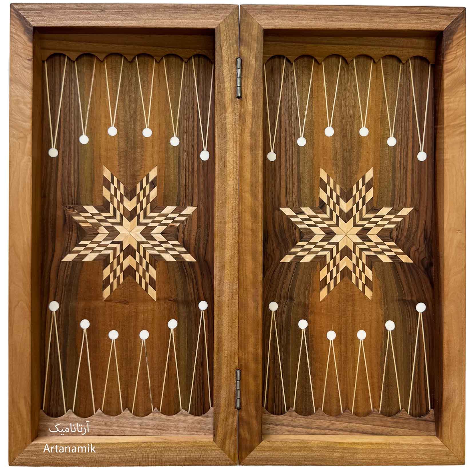 * لوازم همراه: مجموعه کامل مهرههای بازی، تاسهای باکیفیت و یک کاور پارچهای نفیس با طرحهای اصیل ایرانی (گلیمی یا ترمه) همراه با محصول عرضه میشود تا زیبایی و محافظت اولیه را فراهم آورد.