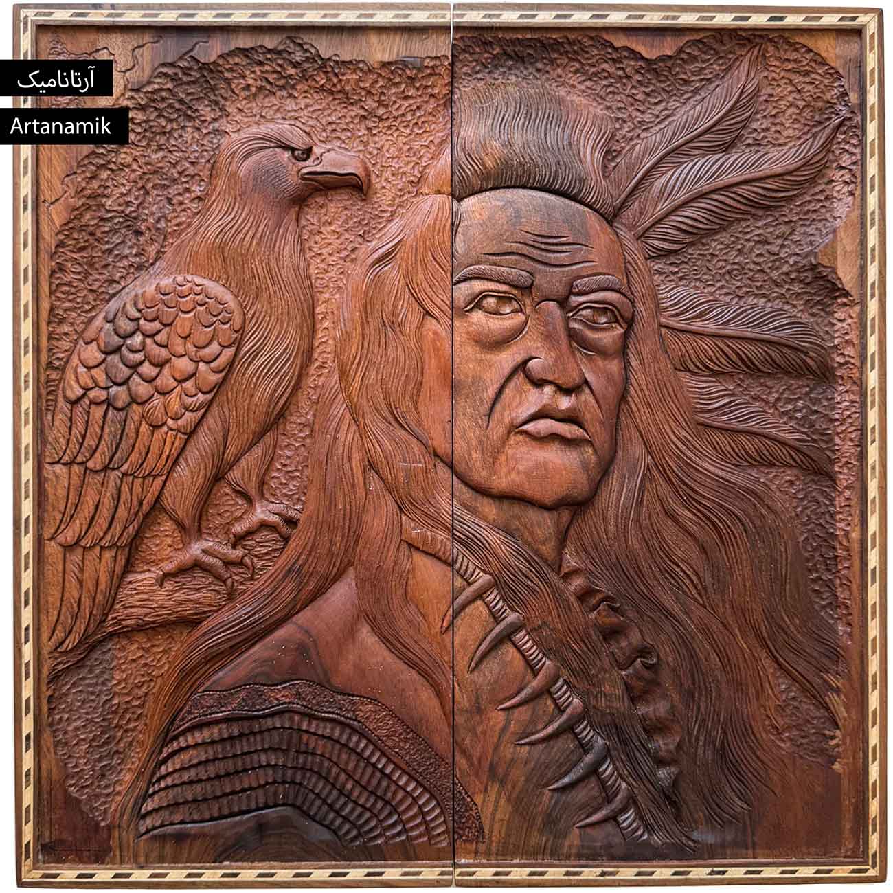 استادکاران در خلق این اثر، از نهایت ظرافت و عمقبخشی استفاده کردهاند. منبتکاری به شیوه برجسته انجام شده تا چهرهی باوقار رئیس بومی با خطوط عمیق و پرابهت و همچنین شکوه عقاب، کاملاً سهبعدی و زنده به نظر برسد.