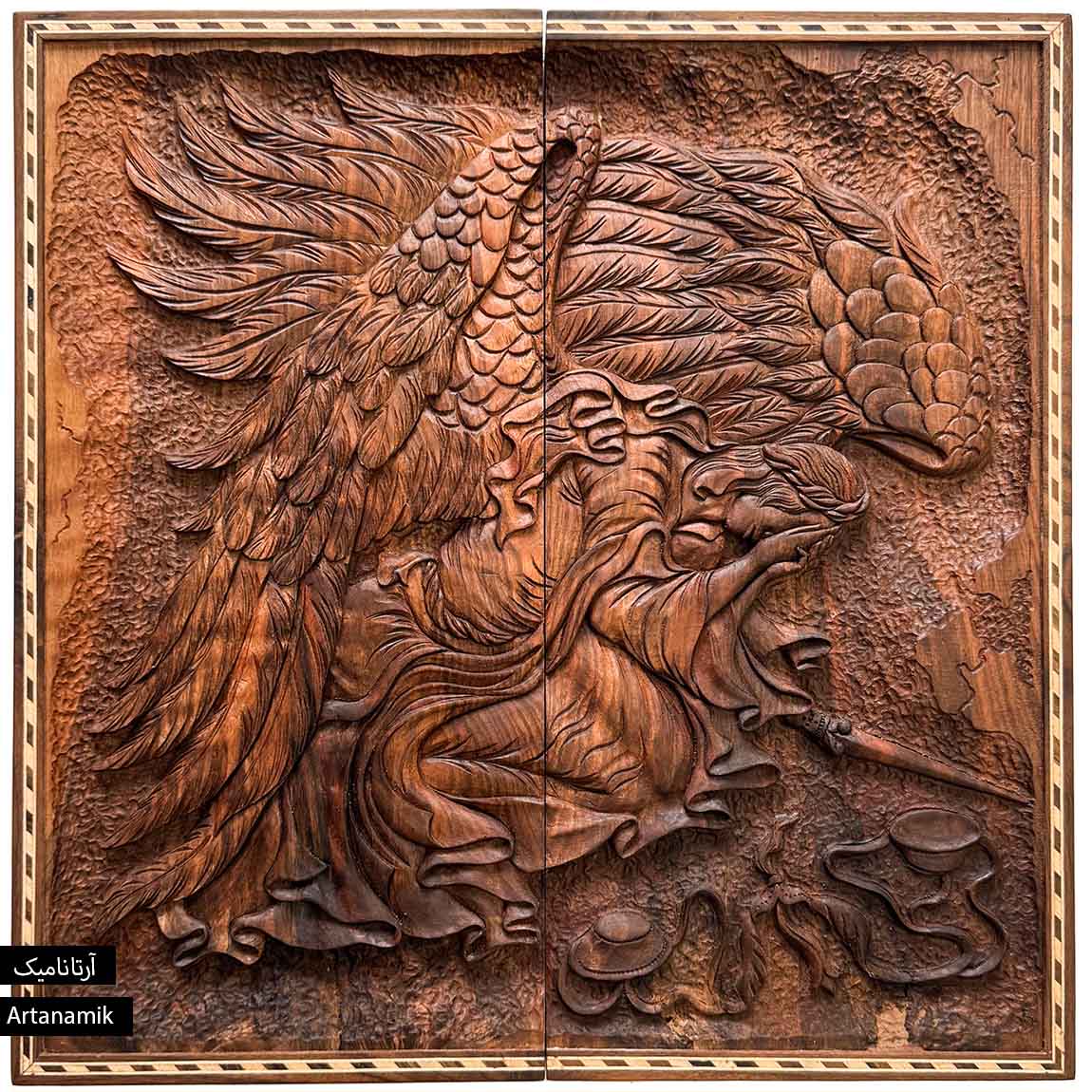 تخته نرد منبت کاری شده طرح فرشته عدالت، انتخابی نفیس و لوکس برای علاقه‌مندان به بازی‌های سنتی و هنر اصیل ایرانی است. این محصول از چوب گردوی کاملاً خشک و باکیفیت ساخته شده که در برابر تغییرات رطوبتی و جابه‌جایی مقاوم بوده و مانع از تاب‌برداشتگی می‌شود. سطح تخته با منبت کاری ظریف و کاملاً دست‌ساز تزئین شده و نقش فرشته عدالت در بیرون و در درون مارس هشتپر، جلوه‌ای باشکوه و خاص به این اثر بخشیده است.