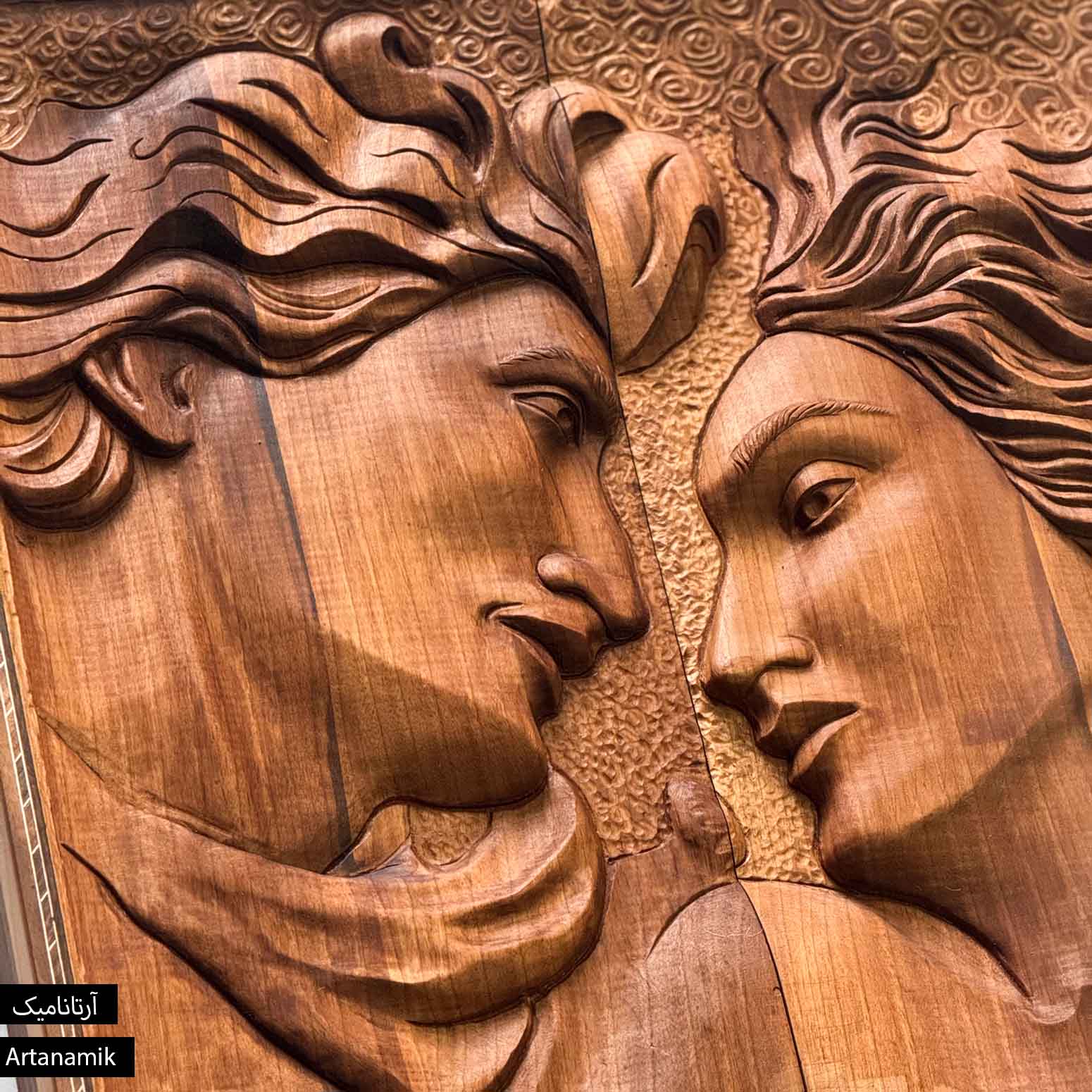 در طراحی این تخته نرد نفیس، چهرههای "ویس و رامین" با ظرافتی بینظیر و به سبک منبت کاری عمیق بر روی چوب نقش بستهاند. برجستگیها و فرورفتگیهای چوب به گونهای استادانه تراشیده شدهاند که سایهروشنهای چهرهها، حسی از زنده بودن و نگاه عاشقانه را به بیننده منتقل میکند. این فقط یک بازی نیست؛ هر بار باز کردن این تخته، گشودن پنجرهای به سوی یک عاشقانه کلاسیک است.
